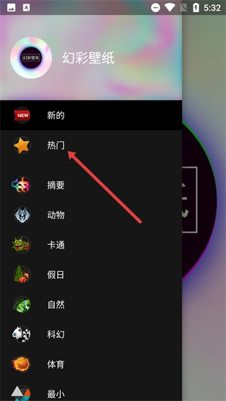 3、打开分类菜单后,可选择【热门】-【动物】等壁纸分类,浏览对应类别的高清壁纸资源。