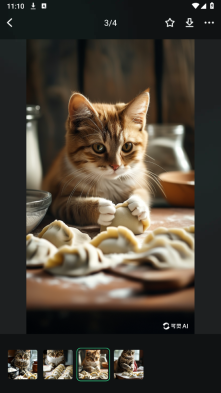 1. 在AI图片创意描述框中输入提示语,例如:一只猫咪在厨房里包饺子。