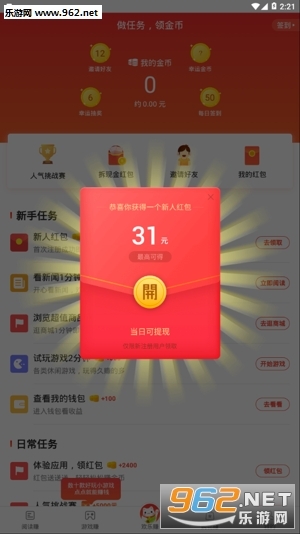 【金币奖励】超多任务,赚到手软!开宝箱、领时段红包、签到,金币如流水般不断!邀请好友,收入直接翻倍!
