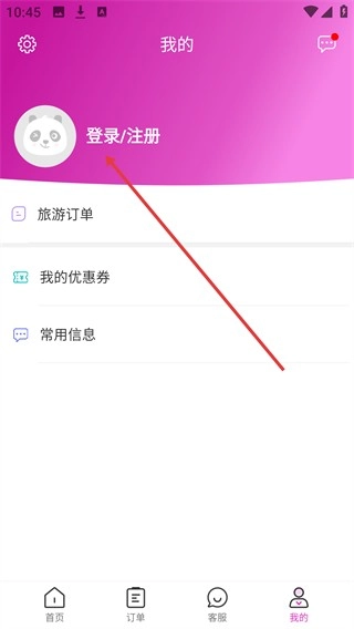 2、进入【我的】页面,点击【登录/注册】选项进入登录界面。