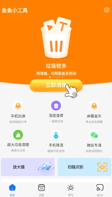 鱼鱼小工具是一款工具种类丰富、覆盖场景广泛的手机工具箱,你可以一键完成手机清理、扫描识别、放大镜、日历天气查询等操作,轻松满足日常生活中的各类需求。它无需复杂设置,打开就能直接使用,而且占用空间小,为你的日常使用带来了不少便利。此外,工具箱内的工具还会定期更新,以保证各项功能始终实用、不过时。