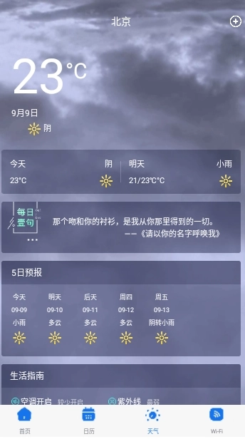 4、也可以切换天气界面,查看当前天气状况。