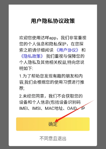 2.在弹出的用户隐私协议政策界面点击确定