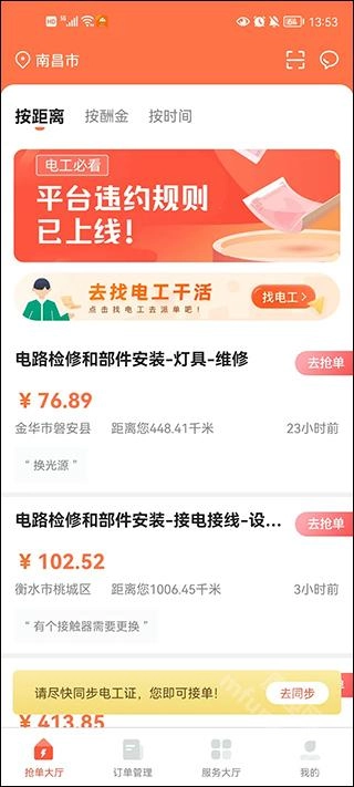 覆盖全国范围,附近工单及时推送提醒,让电工师傅不错过任何机会。