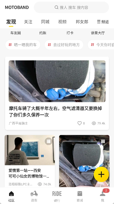 1、在社区模块中将发现许多热爱骑行的朋友,可以结识伙伴一同骑行。