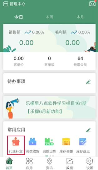 1、打开乐檬零售,在首页选择。