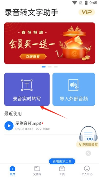 1、在主界面中点击“录音实时转写”功能。