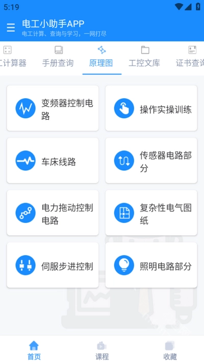 3、在学习功能方面,电工小助手同样不容小觑。它提供了丰富的电工学习资料,包括安全用电技术、维修电工技能与应用、物业电工、家装电工、电路设计与布线等教程。