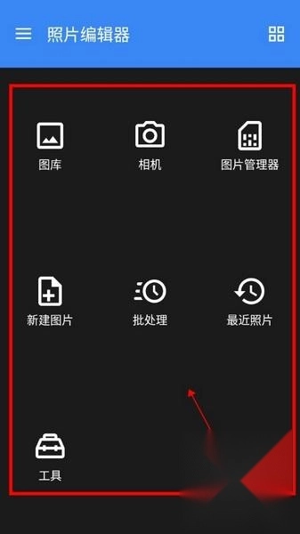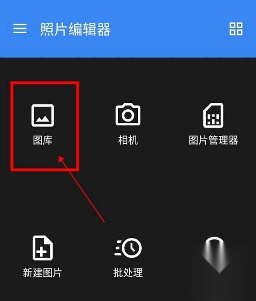 1.打开照片编辑器后,点击【相机】拍摄或通过【图库】添加照片。