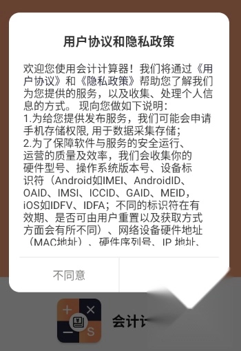 1.安装并打开会计计算器,点击同意