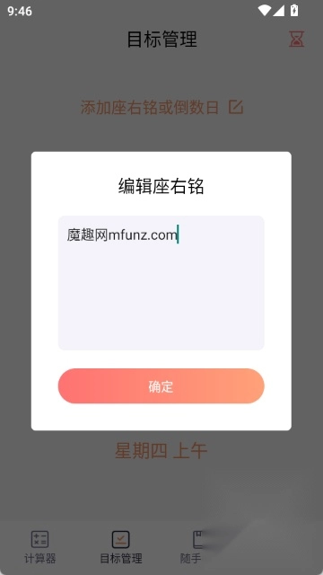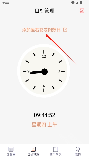 3.点击目标管理,可以添加座右铭或倒数日