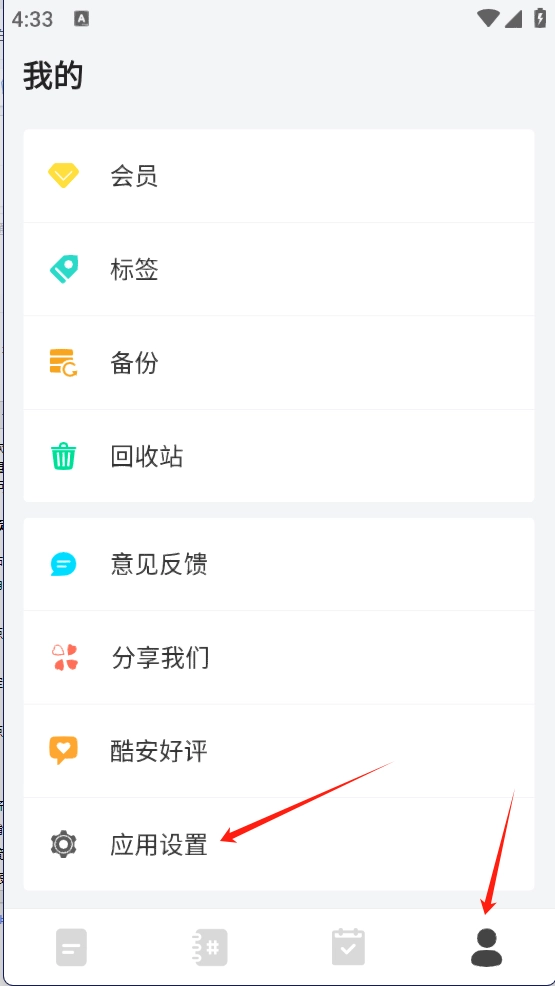 2、然后进入右下角个人中心,点击【应用设置】;