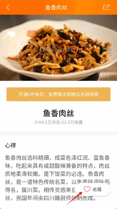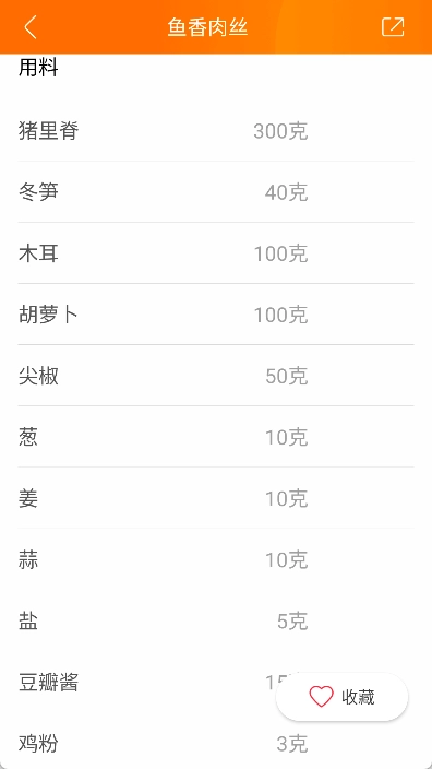 5、如果遇到喜欢的菜谱可以直接点击“收藏”,以便日后随时查阅。