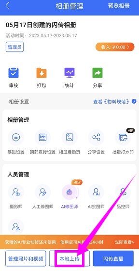 2. 当进入相册界面后,找到并选择“本地上传”这一选项。