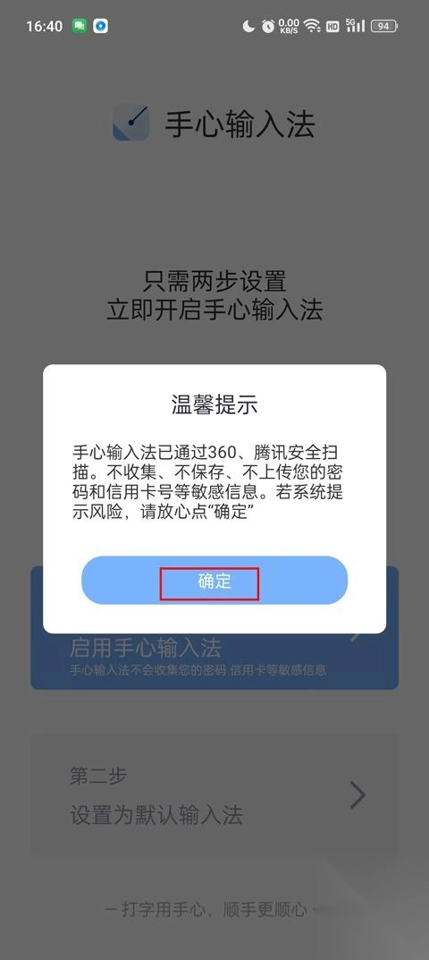 2、进入输入法管理界面,开启手心输入法的使用权限。