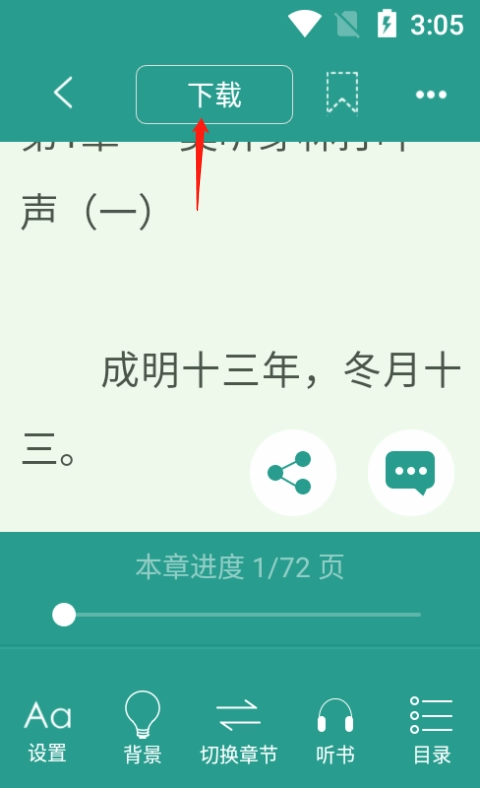 随后点击小说中间随意的一处。