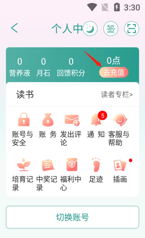 接下来在个人中心页面点击“去充值”按钮,需要注意的是,执行这一操作前请先登录该软件账号。
