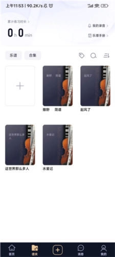 点击谱夹,这里能够看到你的练习时长和收藏的乐谱;