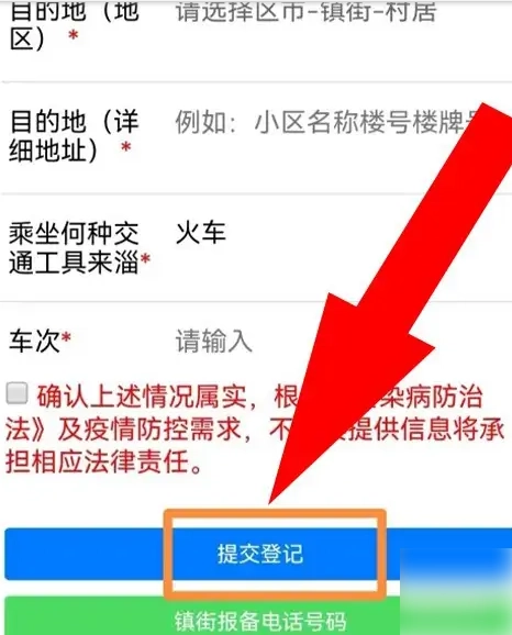 最后,在页面里填写好个人报备信息,点击“提交登记”按钮就能完成报备了,具体操作可参考下图。