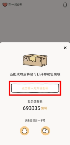2、还可以把自己生成的匹配码复制下来发给伴侣,让对方手动填写以完成配对。
