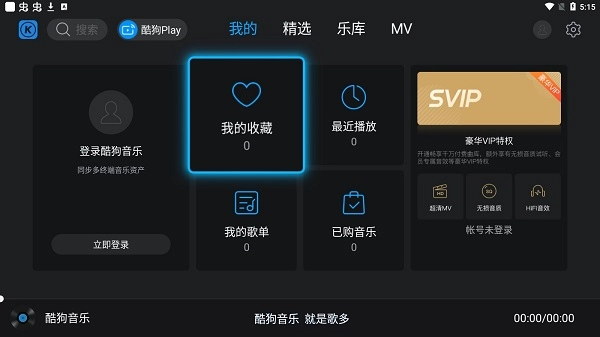 酷狗音乐是一款专门为智能电视、电视盒子等Android TV设备打造的音频播放应用,对音乐爱好者而言,这款软件想必都不陌生。它具备海量正版音乐资源,音质表现优异,同时提供每日推荐、精选歌单以及丰富的风格分类,便于用户依据个人喜好搜索并播放喜欢的歌曲。要是你热衷于K歌,还能在线观看MV,同步歌词尽情展现唱功。熟悉酷狗电脑版的用户会察觉到,TV版的界面设计与之十分相似,并且在保留经典功能的前提下,新增了遥控器和飞鼠操作模式,带来更流畅便捷的音乐体验。另外,该应用界面简洁直观,操作友好,适配创维、TCL、康佳、海信、长虹等主流品牌智能电视,同时兼容小米、华数、华为、天敏、杰科等多种电视盒子,堪称当前电视端最出色的音乐播放器之一,值得一试。