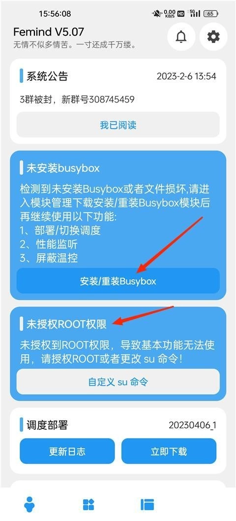 首先,该软件的使用需要先安装busybox并获取root权限。