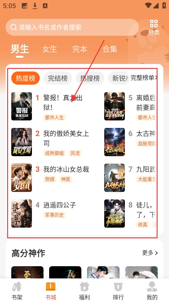 1、若想找小说听书,在书城热度榜选一本,比如【警报!真龙出狱!】,点击进入详情页。