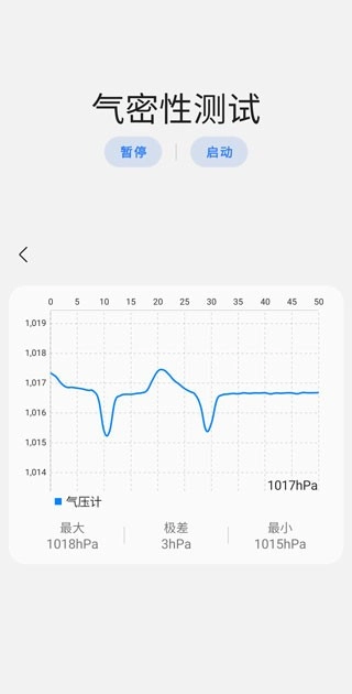 3、能自动计算压力极差,显示压力的最大值与最小值,对手机气密性进行检测,支持暂停和启动操作,帮助用户了解手机状况。