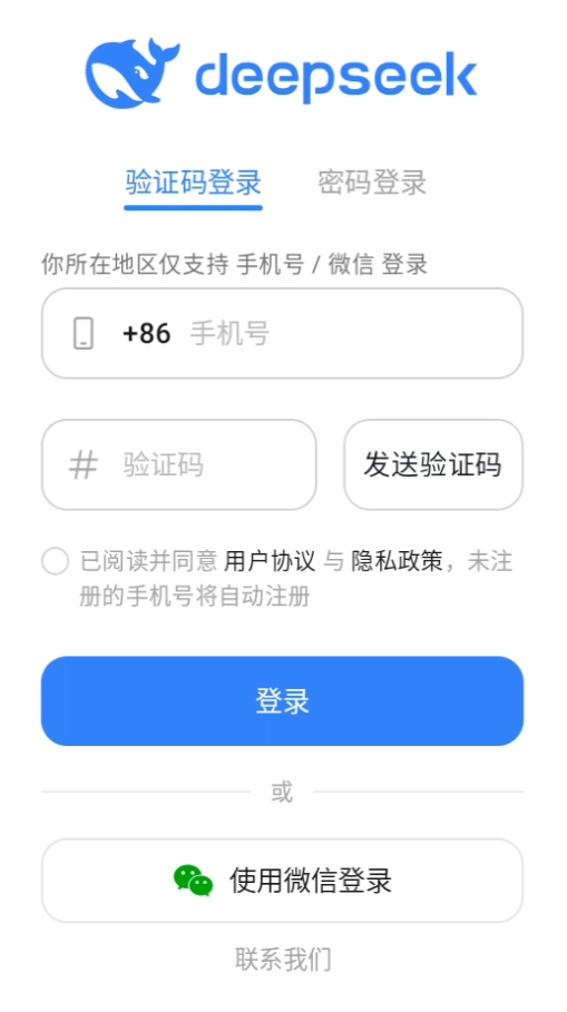 2、注册账号:打开DeepSeek App,点击“注册”,输入手机号和验证码,设置密码,完成注册。