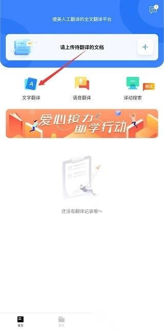 点击“文字翻译”按钮,进入翻译页面,然后输入你需要翻译的文字内容。