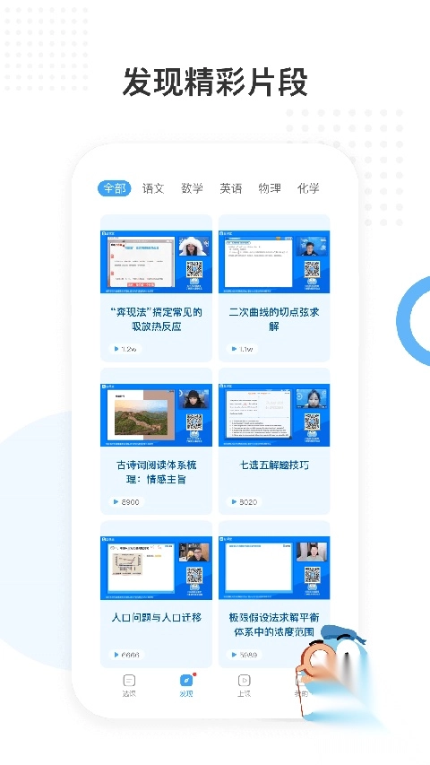 【专业教学内容】详细讲解小学、初中、高中主干课程的全部知识点,通过对各学科优秀学生水平名师的有趣讲解。