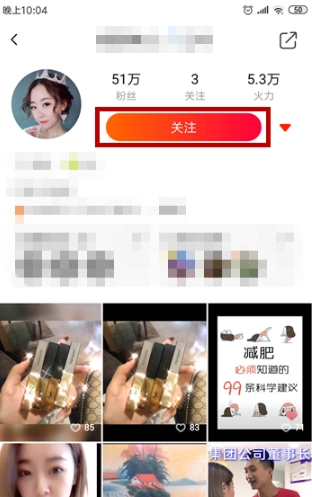 接下来,我们需要进入该用户的个人主页,随后找到并点击页面中红框标注的关注按钮。