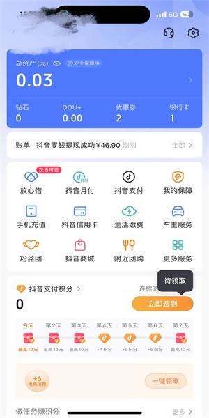 点击我的钱包,再点击银行卡。