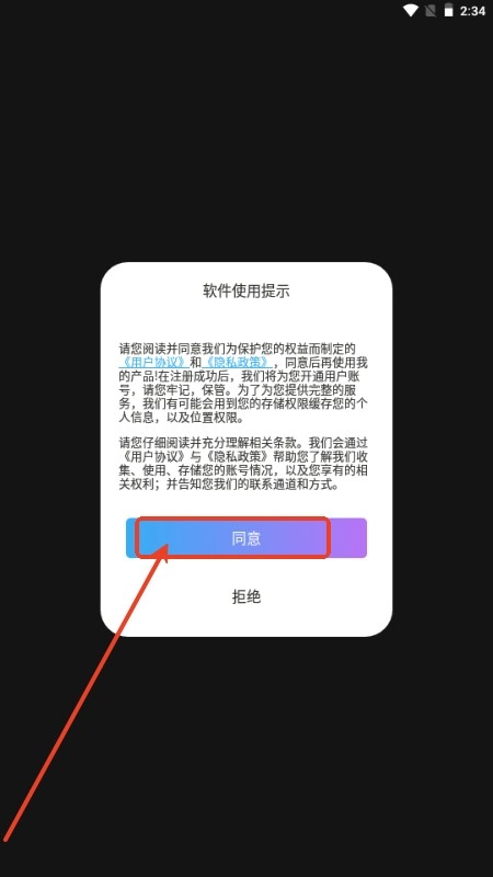 进入软件后同意软件政策;