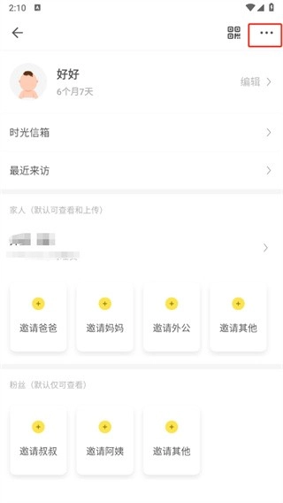 然后在孩子的个人信息页面,我们可以查看各类不同的信息,此时我们点击页面右上角的【三点图标】。