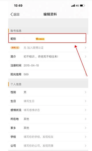 点击查看并编辑基本信息,若未显示可点击简介旁的“↓”按钮。
