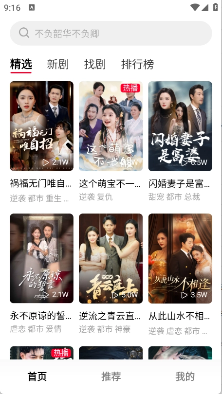 都市、逆袭、言情、复仇、总裁、家庭伦理等20+题材任挑,告别剧荒,你想看的都能来这里围观。