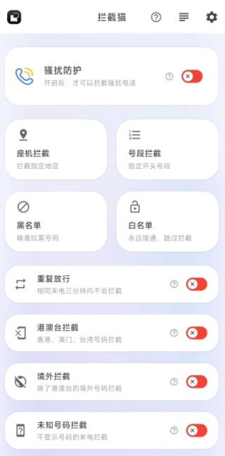 拦截猫,能有效阻挡手机里的骚扰电话和垃圾短信,使用起来很简单,还可以设定要拦截的电话所属地区,精准过滤掉没用的电话或短信,拦截效果出色,并且能依据地区、号段乃至电话号码的类型开展更细致的拦截操作。