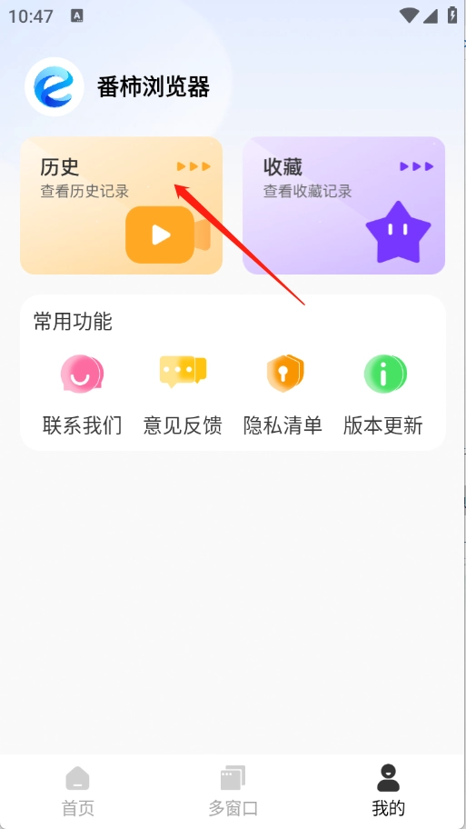 进入到“我的”页面,点击“历史”。