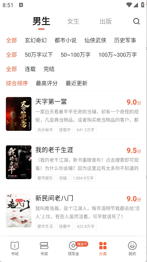 分类对小说做了细致的划分,涵盖了言情、武侠、科幻等多种类型。
