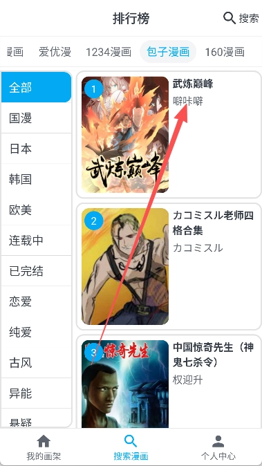 3、也可以通过搜索框直接查找漫画名称或作者。