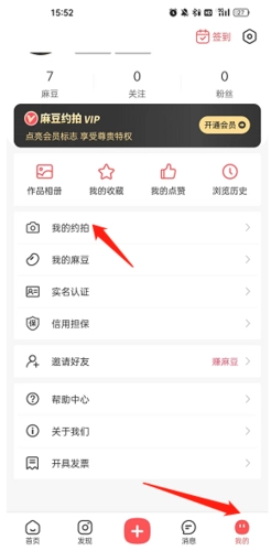1、打开软件,点击底端的“我的”选项,然后点击“我的约拍”选项。