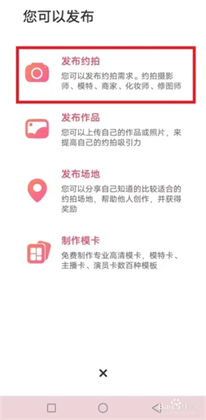 添加页面,选择发布约拍。