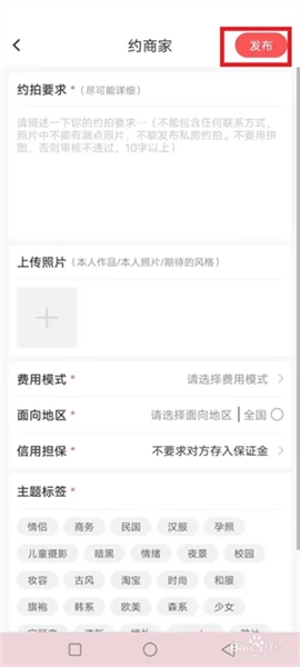 3、如何发布约拍信息?