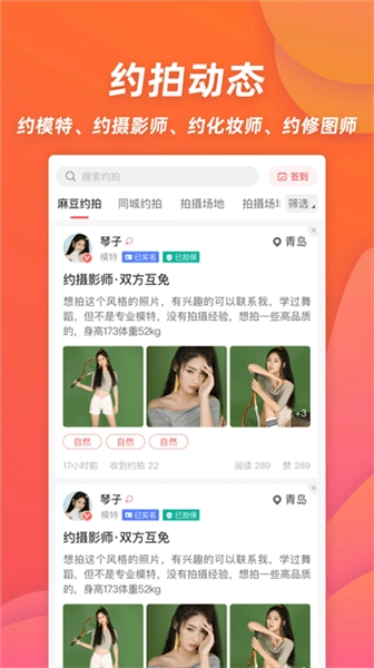 【约拍动态】你可以在线发布约拍动态,寻找想合作的人。动态内容可以是你的约拍要求和个人作品或照片,有合作意向的人可以在线发起对你的约拍请求。