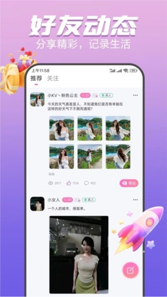 在动态广场分享个人生活动态,能够记录下生活里的美好故事。