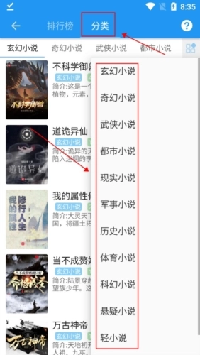 3、第二种方法,是直接依据分类来挑选,类型十分丰富,像玄幻小说、奇幻小说、武侠小说之类都包含在内,不过不同网站的分类存在差异,大家根据自身需求选择即可!