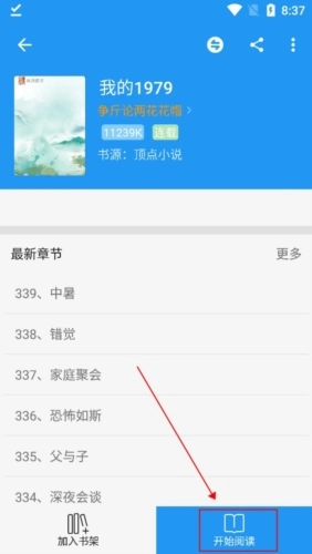 1、第一步要先找到你想缓存的小说,然后点击右下角的【开始阅读】按钮。