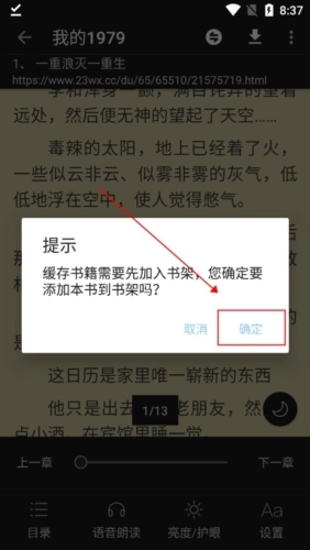 3、若用户尚未收藏这本小说,需先点击【确定】将其收藏起来。