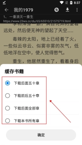 4、最后会自动弹出缓存选项,你想缓存多少章节都可以。